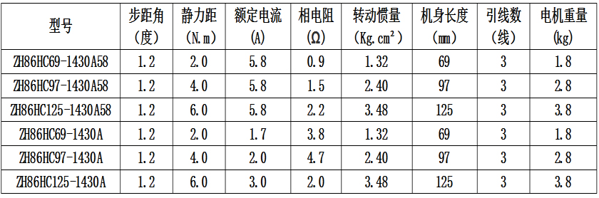 特点 双极性1.2° 机座号:86 保持转矩:2.0~8.5N.M 输出转矩大,高转速 电机发热小,噪音低,效率高 高速停止平稳快速,无零速振荡运行平稳,振动噪声小 响应速度快,适合频繁启停的场合。 技术数据