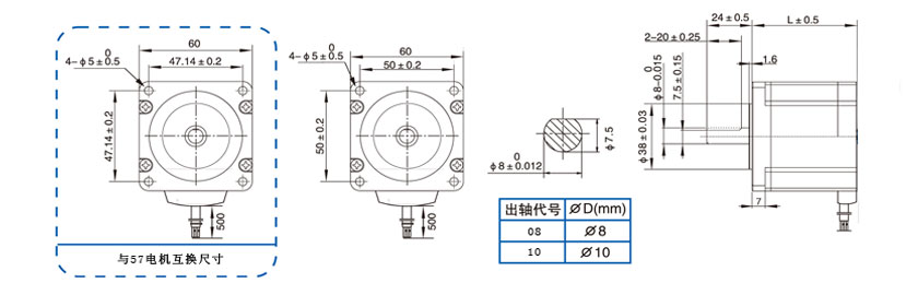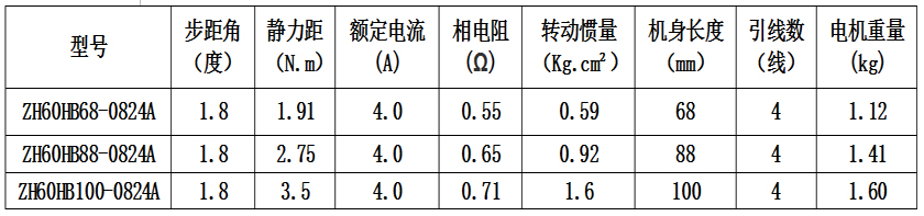 特点 双极性1.8° 机座号:60 保持转矩:0.88~3.5N.M 输出转矩大,高转速 电机发热小,噪音低,效率高 高速停止平稳快速,无零速振荡运行平稳,振动噪声小 响应速度快,适合频繁启停的场合。 技术数据
