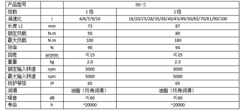 产品简介:振合机电86mm系列传动型减速机,均采用国际标准钢材,用20CvMnT渗碳淬火和磨齿,体积小巧,重量轻,输出扭矩大。回程间隙小,钢性好,承载能力强。传动效率高,转动比范围广,精度高。噪声低,寿命长。安装方便、外形美观。保证精密传动的前提下完美运用在降低转速增大扭矩和降低负载/电机的转动惯量比的使用场合