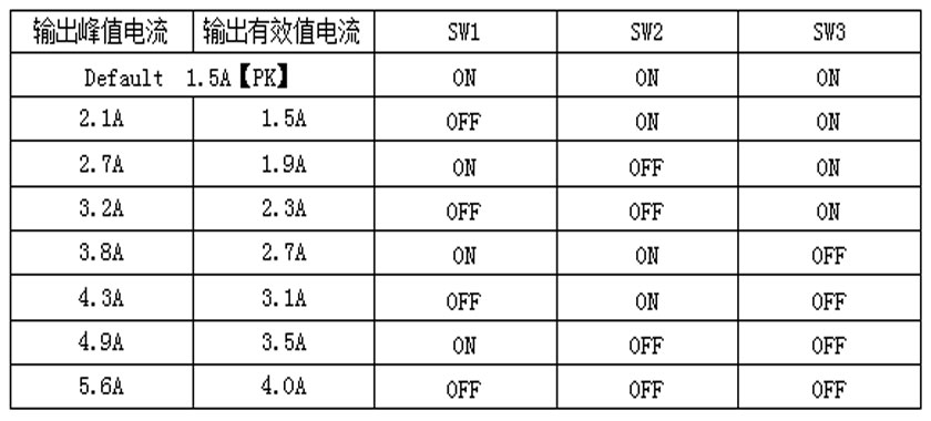电流设定方便,可在0.1-5.6A(峰值)之间任意选择