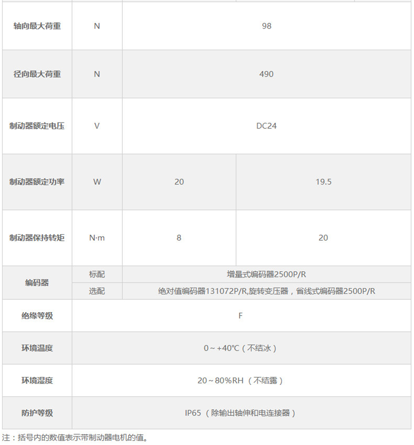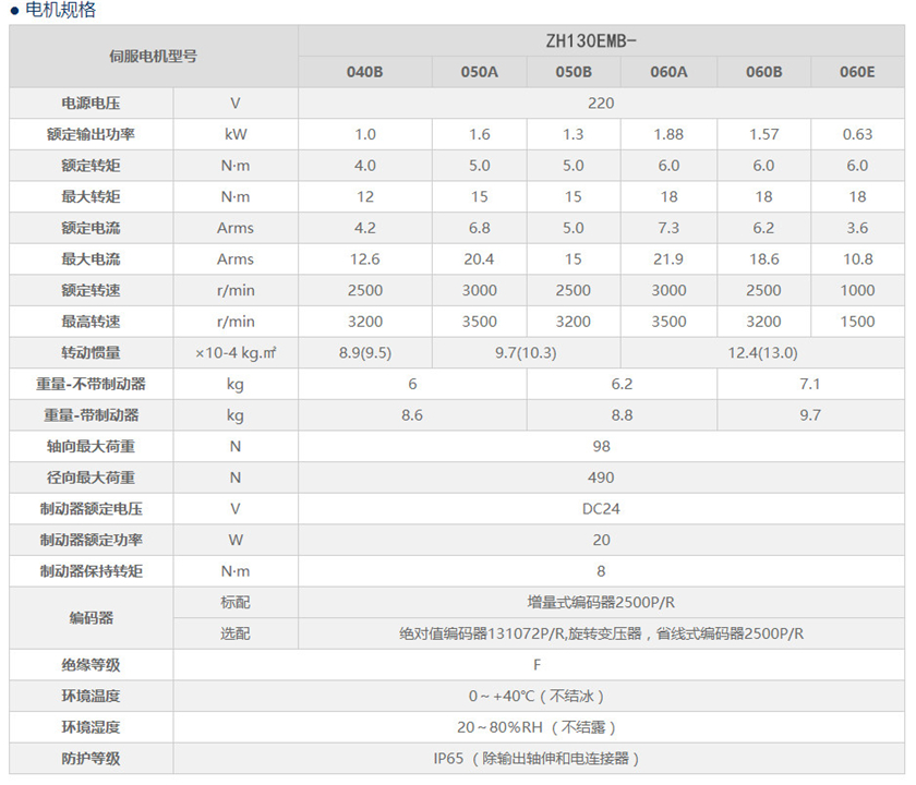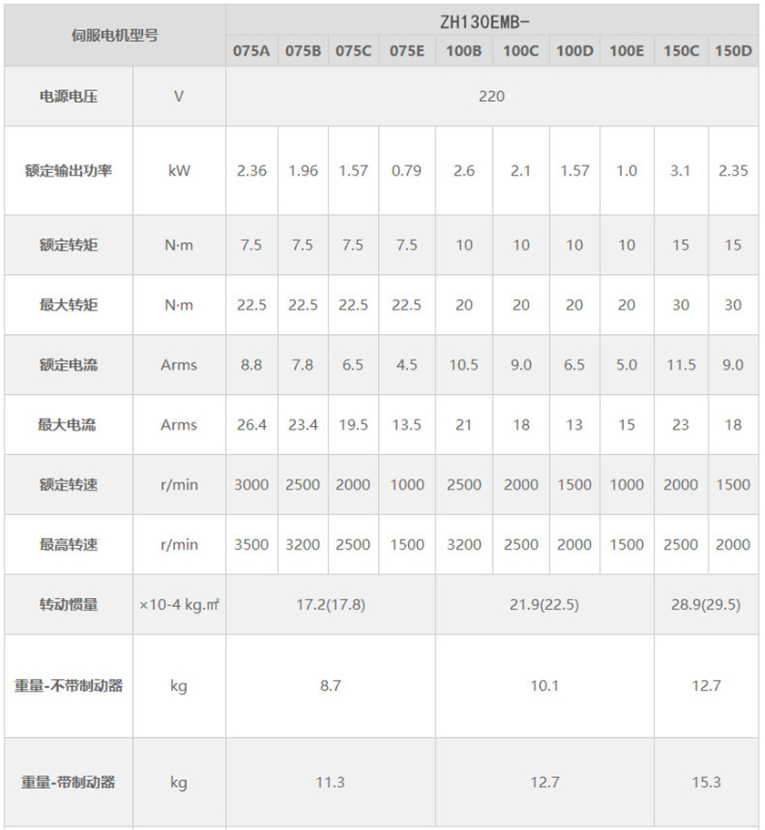 130mm交流伺服电机参数表