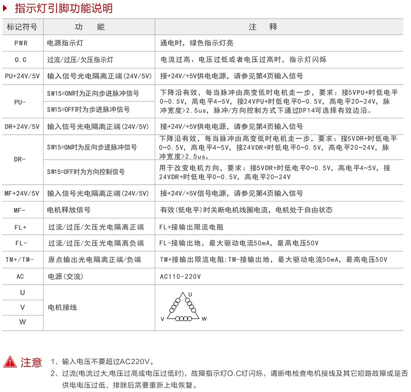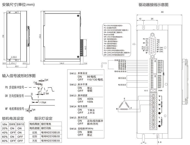 相位记忆功能(注:输入停止超过3秒后,驱动器自动记忆当时电机相位,重新上电或MF信号由低电平变为高电平时,驱动器自动恢复电机相位)。