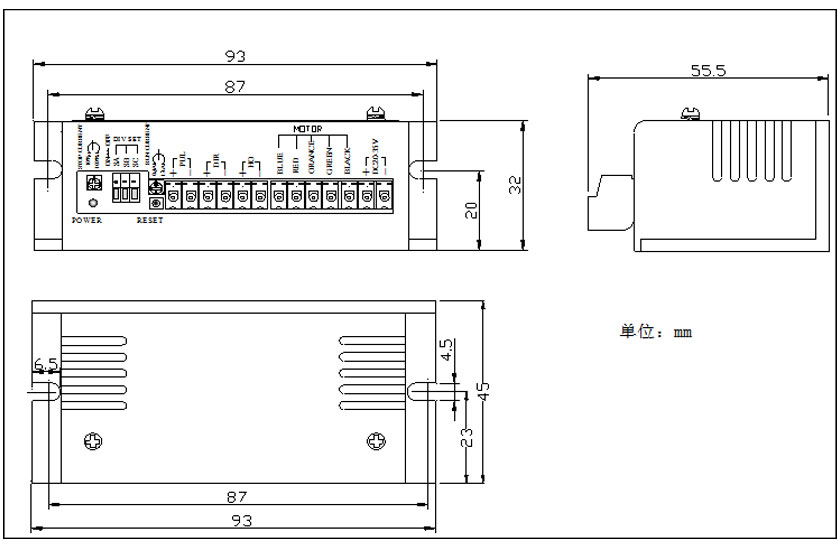 体积非常小巧:ZH5414M是一款小巧的步进驱动器, 体积为93x45.5x33(mm3)。净重量为:0.12kg