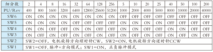 每圈脉冲数可通过调试软件或拔码设定(细分)